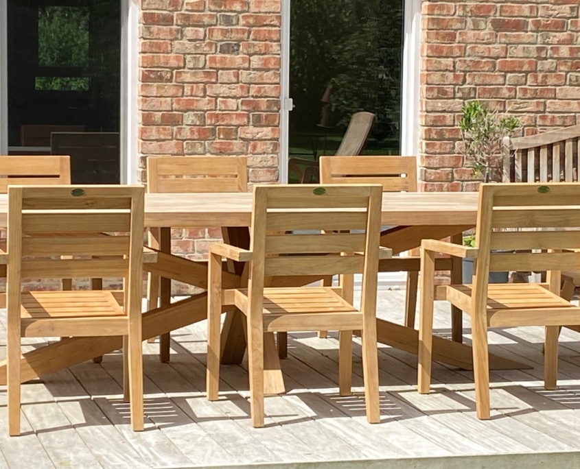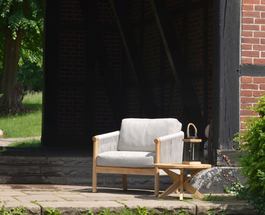 Teakmöbel, exklusives Outdoor-Kunststoffgeflecht, Regiestühle, Sonnenschirme, Auflagen & Kissen sowie Rattankörbe – und vieles mehr.